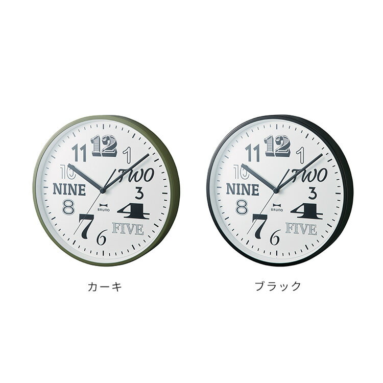 さまざまなフォントがランダムに配置された文字盤とカーキまたはブラックのフレームはヴィンテージ感のあるお部屋にしてくれます。