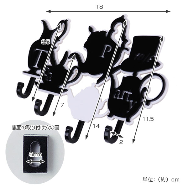 サイズ約 幅18×奥行2×高さ14(cm)重量:約60g内容量1個材質アクリル生産国中国製備考総耐荷重:200g(取り付ける壁の材質等により異なります)商品区分その他玄関周り雑貨カテゴリから探すキーフック アリス Tea Party アリスのシルエットをモチーフにしたキーフック4つのフックに鍵等を掛ける事が出来ます♪