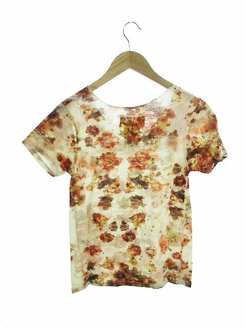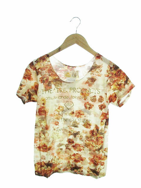 シアタープロダクツ THEATRE PRODUCTS カットソー クルーネック 花柄 プリント ウール 半袖 ベージュ オレンジ /YK5 レディース 【中古】【ベクトル 古着】 181219 ブランド古着ベクトルプレミアム店