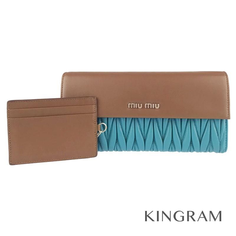 ミュウミュウ miu miu マテラッセ 5M1369 パスケース付き 二つ折り長財布 5MH379 ココア×ラグーナ レザー レディース財布 rkd 【中古】