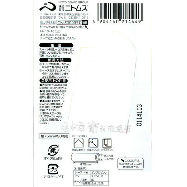 ■ピンク・グリーン・ブルーの全3色 ■本体規格:全長93mm ■テープ規格:幅75mm×30周巻 ■本体・ケース:ポリプロピレン ■テープ:特殊粘着加工紙